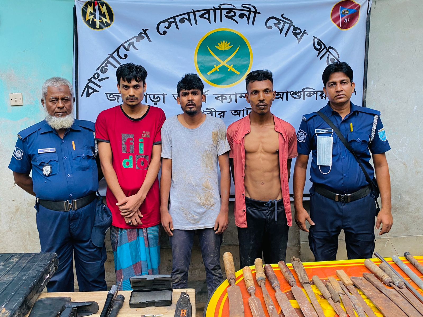 উক্ত সন্ত্রাসীদের বাসা তল্লাশীকালে একটি অত্যাধুনিক শটগান, দেশীয় তৈরি ধারালো অস্ত্র এবং চাঁদাবাজির টাকা সহ বিভিন্ন অপরাধমূলক কর্মকাণ্ডের আলামত উদ্ধার করা হয়। আটক ব্যক্তিরা হলেন—