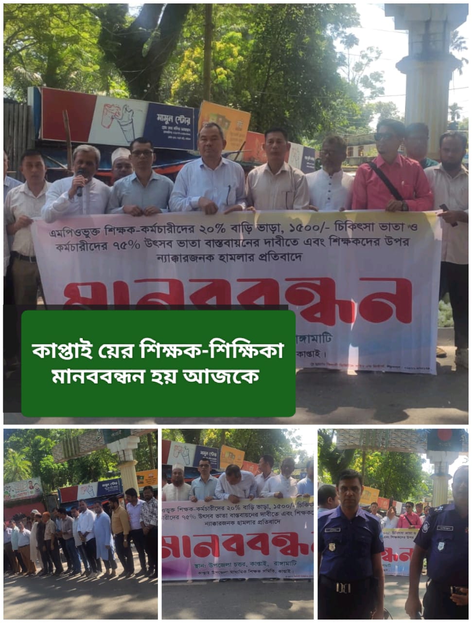 কাপ্তাইয়ে এমপিওভুক্ত মাধ্যমিক শিক্ষকদের মানববন্ধন ও কর্মবিরতি পালিত