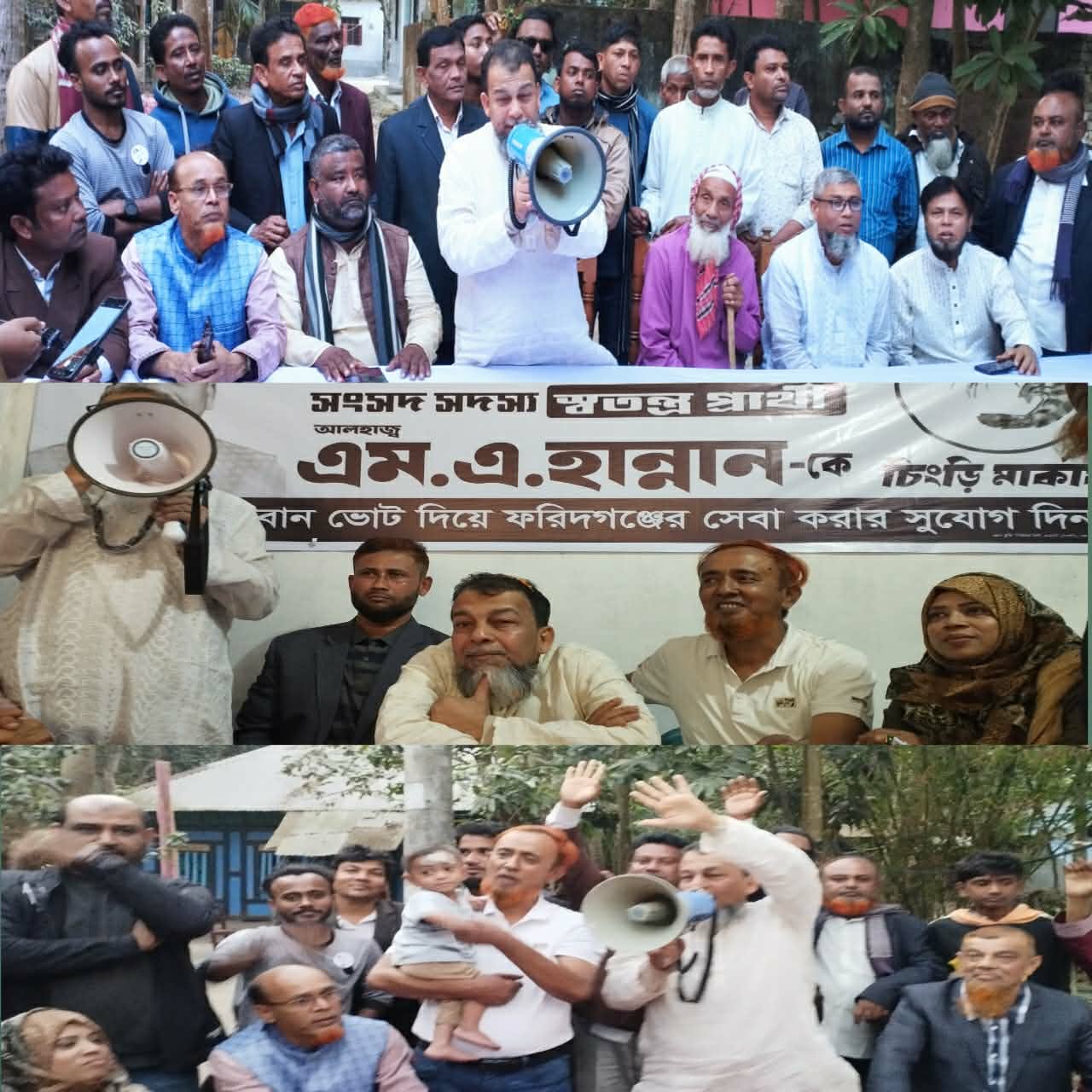 গণসংযোগ কালে (স্বতন্ত্র প্রার্থী) আলহাজ্ব এম এ হান্নানের সাথে ছিলেন ফরিদগঞ্জ উপজেলা বিএনপির সাবেক যুগ্ম আহ্বায়ক ফারুক আহমেদ খাঁন, ডাক্তার আবুল কালাম আজাদ, আবু জাফর খুশরু মোল্লা, ফরিদগঞ্জ উপজেলা বিএনপির সাবেক সদস্য মনির পাটোয়ারী, কারা নির্যাতিত বিএনপি নেতা আজাদ পাটোয়ারী, উপজেলা স্বেচ্ছাসেবক দলের সদস্য সচিব ফারুক আহমেদ, উপজেলা মহিলা দলের সভানেত্রী ও ভাইস-চেয়ারম্যান রেবেকা সুলতানা, বিএনপি নেতা শিপন, ওয়ার্ড বিএনপির সভাপতি মাসুদ খন্দকার, মামুন হোসেন, মিজানুর রহমান, রিয়াজুল ইসলাম রিজু, মিল্লাদ পাটোয়ারী, খোকন আহমেদ, দেলোয়ার হোসেন মাল, কবির হোসেন, শাহিন আহমেদ, ইব্রাহিম হোসেন, মনির হোসেন,