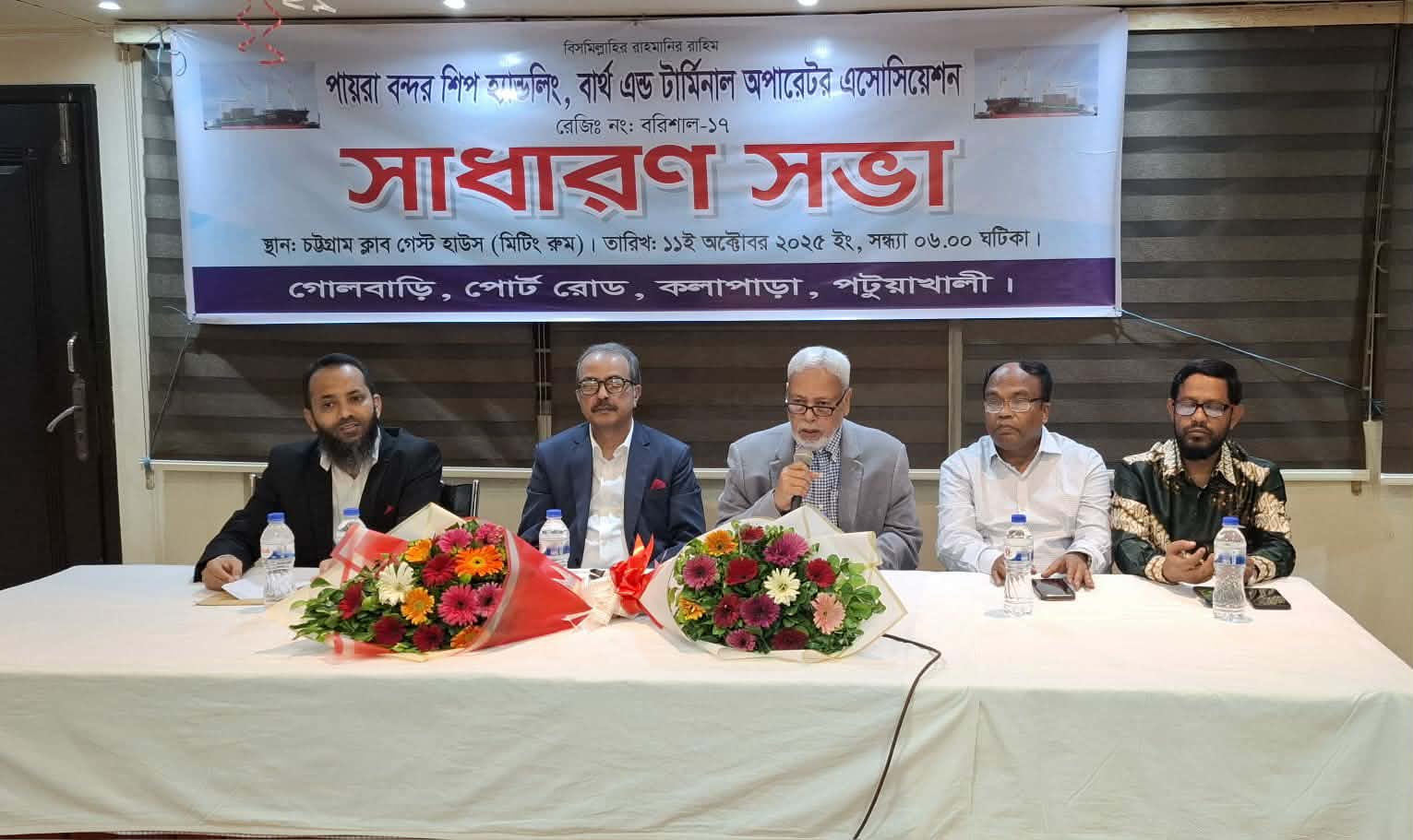 গত ১১ই অক্টোবর ২০২৫ ইং তারিখে, চট্টগ্রাম ক্লাব গেস্ট হাউস (মিটিং রুমে) পায়রা বন্দর শিপ হ্যান্ডলিং বার্থ এন্ড টার্মিনাল অপারেটর অ্যাসোসিয়েশন এর একটি গুরুত্বপূর্ণ সাধারণ সভা অনুষ্ঠিত হয়।