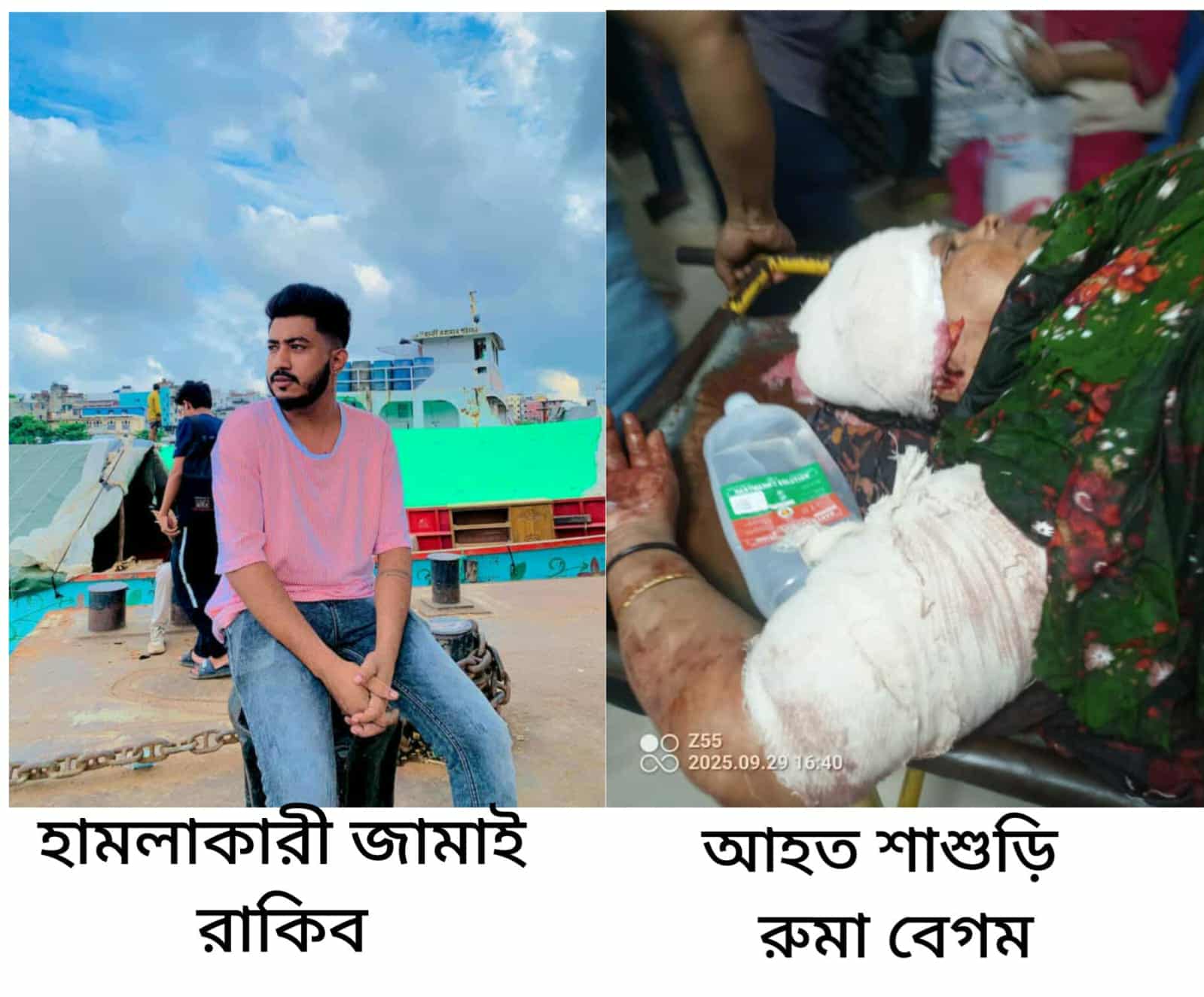 বিগত ২৮ সেপ্টেম্বর ২০২৫ইং তারিখে দুপুর দেড়টার দিকে বাসায় এসে এক নম্বর আসামি রাকিব সহ অন্যান্য আসামিরা দলবদ্ধ হয়ে বাসায় ঢুকে রাকিবের হাতের চাপাতি দিয়ে রুমা বেগম কে হ্যালো পাতারই কুপিয়ে মারাত্মক জখম করে চলে যায়।