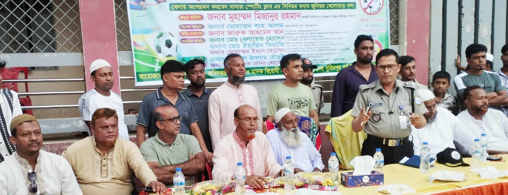 সুবিদপুর পূর্ব ইউনিয়ন মাদক বিরোধী প্রতিরোধ কমিটির সভাপতি সাবেক চেয়ারম্যান ফরিদগঞ্জ উপজেলা বিএনপির যুগ্ম আহ্বায়ক আলহাজ্ব মফিজুল ইসলাম চৌধুরীর সভাপতিত্বে. সুবিদপুর পূর্ব ইউনিয়ন মাদক বিরোধী প্রতিরোধ কমিটির সাধারণ সম্পাদক. দৈনিক ইলশেপাড় পত্রিকার সহকারী সম্পাদক. শিক্ষানবিস অ্যাডভোকেট সাংবাদিক মনির হোসেন এর সঞ্চালনায় মাদক বিরোধী প্রীতি ফুটবল ম্যাচ ও পুরস্কার বিতরণ অনুষ্ঠান অনুষ্ঠিত।