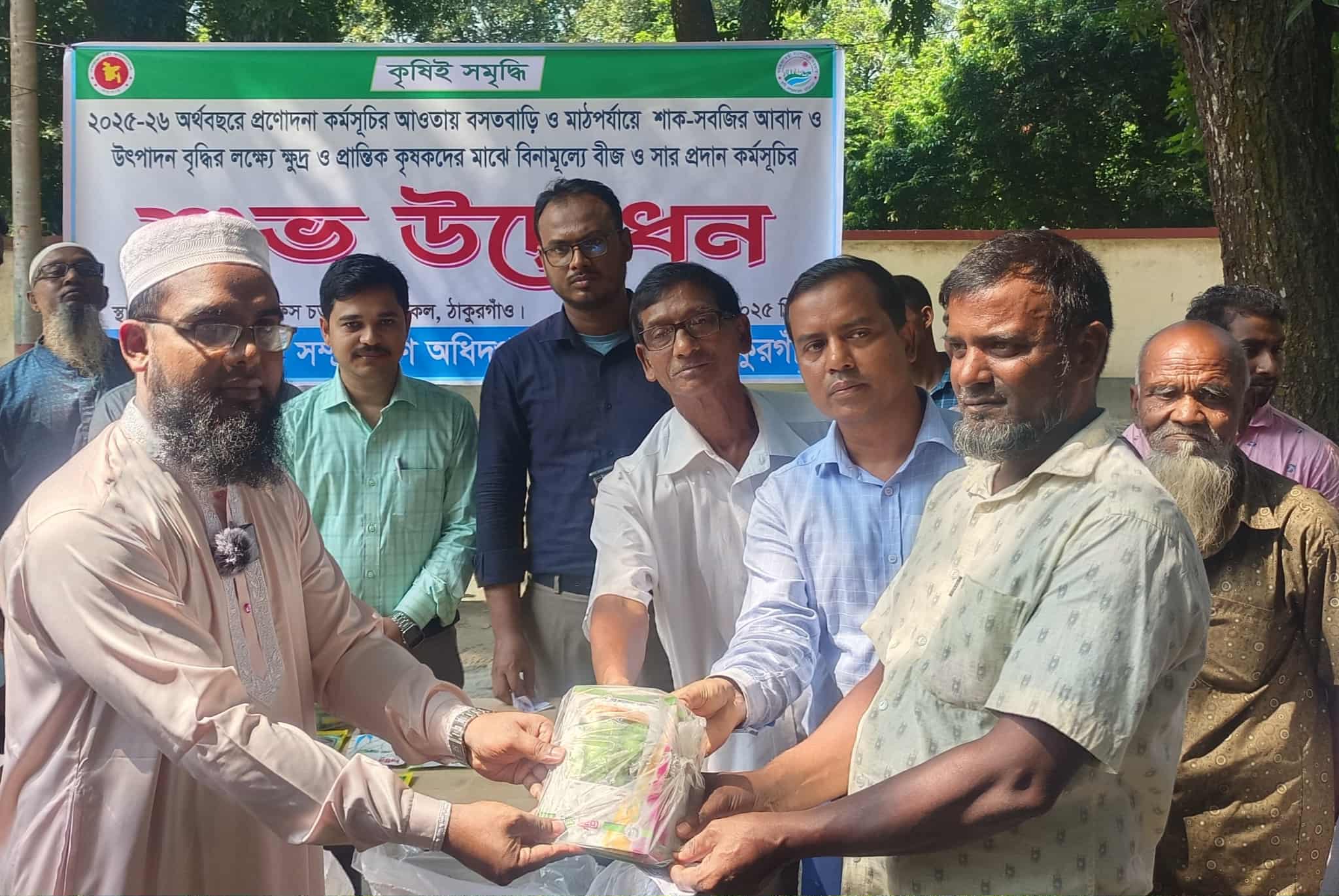 রাণীশংকৈলে কৃষকদের মাঝে বিনামূল্যে শাকসবজির বীজ ও সার বিতরণ।