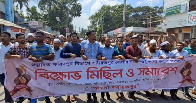 শরীয়তপুরকে ফরিদপুর বিভাগে অন্তর্ভুক্তির প্রস্তাবের প্রতিবাদ